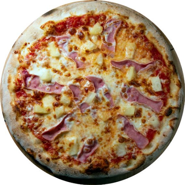 sugo, mozzarella, šunka, salám, slanina, žampiony, olivy, cibule, paprika, česnek