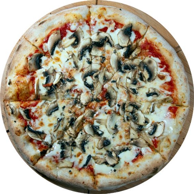 sugo, mozzarella, žampiony, špenát, kukuřice, olivy, cibule