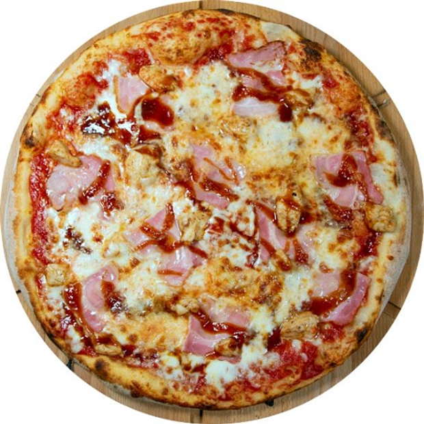 sugo, mozzarella, šunka, slanina, salám, kuřecí maso, BBQ