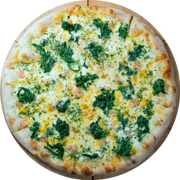 sugo, mozzarella, žampiony, špenát, kukuřice, olivy, cibule